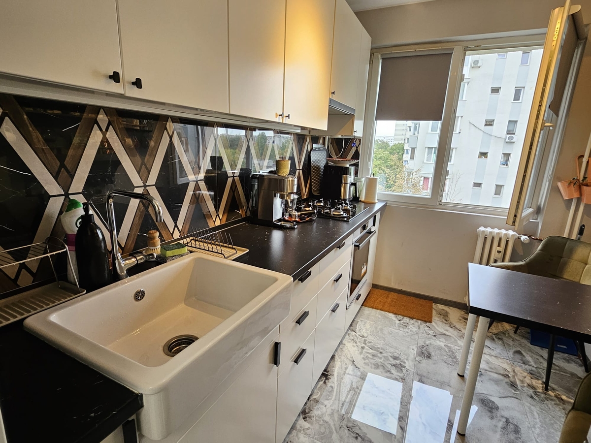 de vanzare apartament 2 camere renovat, complet mobilat si utilat, situat la etajul 6/10 al unui bloc reabilitat termic, fara risc seismic, situat la 5 minute de statia de metrou si de Park Lake Mall.