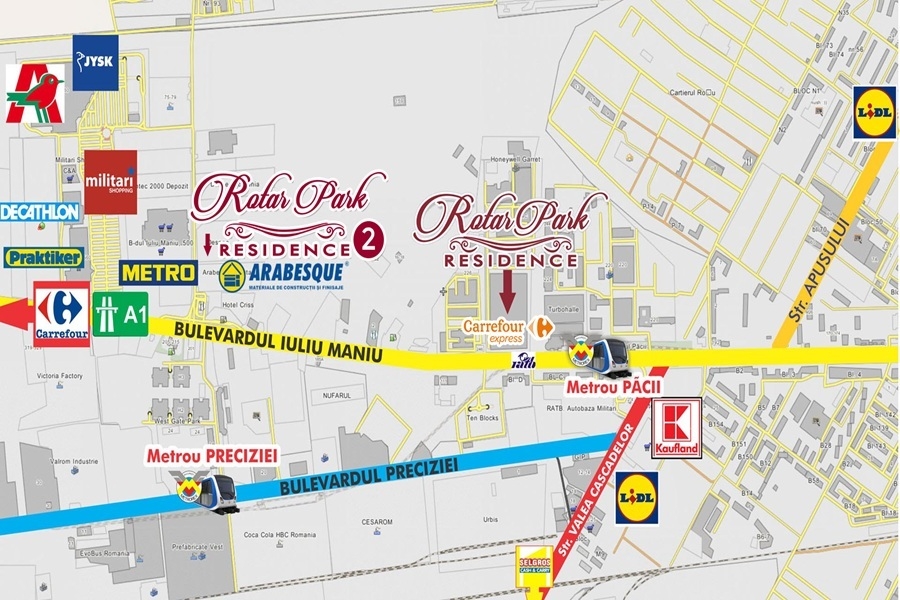 Rotar Park Residence 2 - Imobil S+P+6+7,8 retrase cu un total de 268 unitati locative (garsoniere, studiouri, apartamente cu 2 si 3 camere) este amplasat in Sector 6, Bucuresti pe Strada Drumul Osiei nr.18-28, la doar 200 metri de Bdul Iuliu Maniu si la 700 m de Statia de Metrou Preciziei, in imediata vecinatate aflandu-se Mc Donalds, Arabesque, Metro. Arhitectura moderna cu accente clare si o volumetrie simpla dar atractiva, compartimentarile excelente, calitatea constructiei si a finisajelor, toate acestea venind la un pret competitiv cu posibilitatea de achizitionare prin orice tip de credit bancar cu costuri lunare comparabile unei chirii obisnuite, sunt argumentele care transforma proiectul Rotar Park Residence 2 in unul de referinta pentru zona Militari, in care cu siguranta veti gasi apartamentul pe care il cautati.