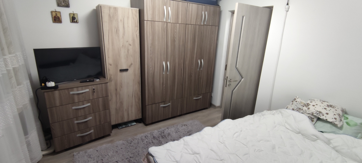Apatament finisat: termopan (pvc culoarea lemnului), faianta, gresie, parchet, tocarie schimbata, instalatii schimbate, boiler, izolatie termica interioara, usa metalica, balcon izolat si inchis cu termopan.