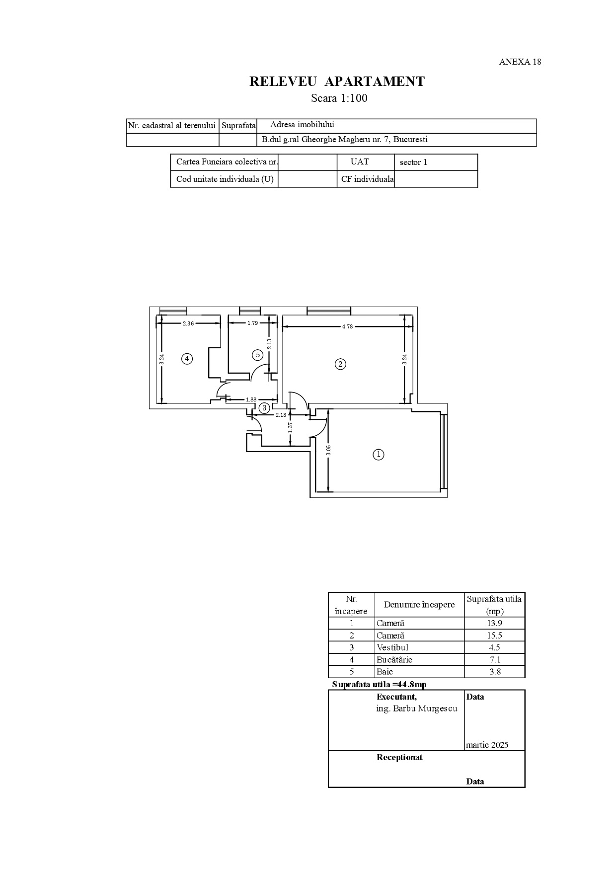 Bld. Gheorghe Magheru, nr. 7 (langa blocul EVA) vanzare apartament compus din 2 camere decomandate, in suprafata totala utila de 44,80 mp. situat la etajul 6 in bloc cu regim de inaltime S+P+9E, construit in anul 1962.