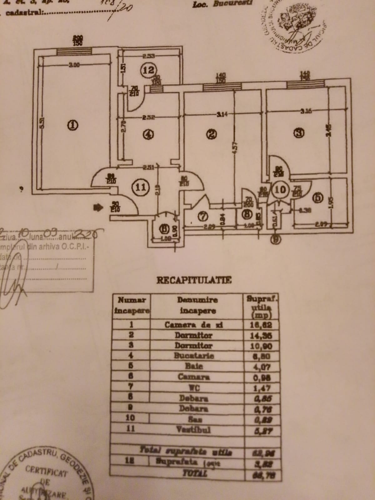 Optiuni interior: 2 grupuri sanitare Apometre Balcon Debara Repartitoare caldura Termopan Usa metalica