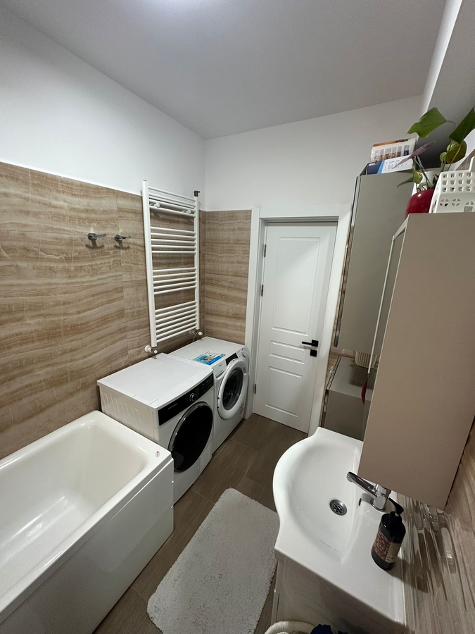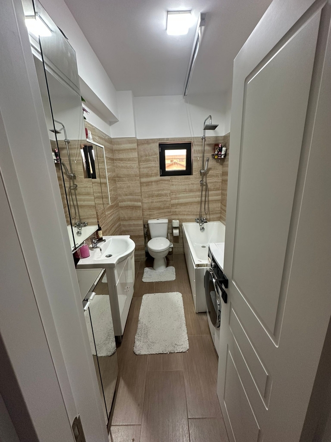 Baie: 4,75 mp – cu masina de spalat Candy 9 kg + uscator Heinner 9 kg