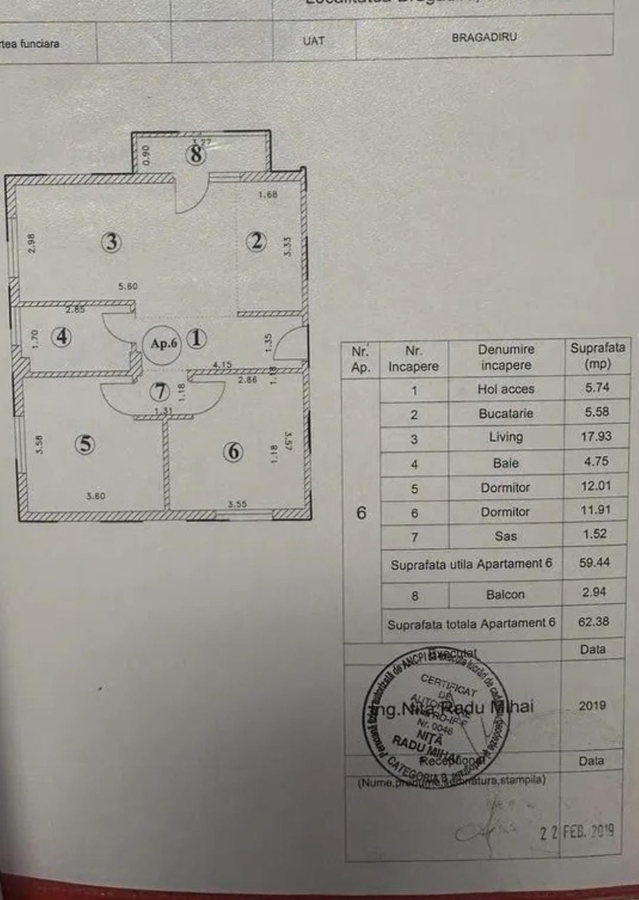 apartament 3 camere complet renovat – Bragadiru, strada Safirului | 62,38 mp | etaj 1/3 | loc parcare