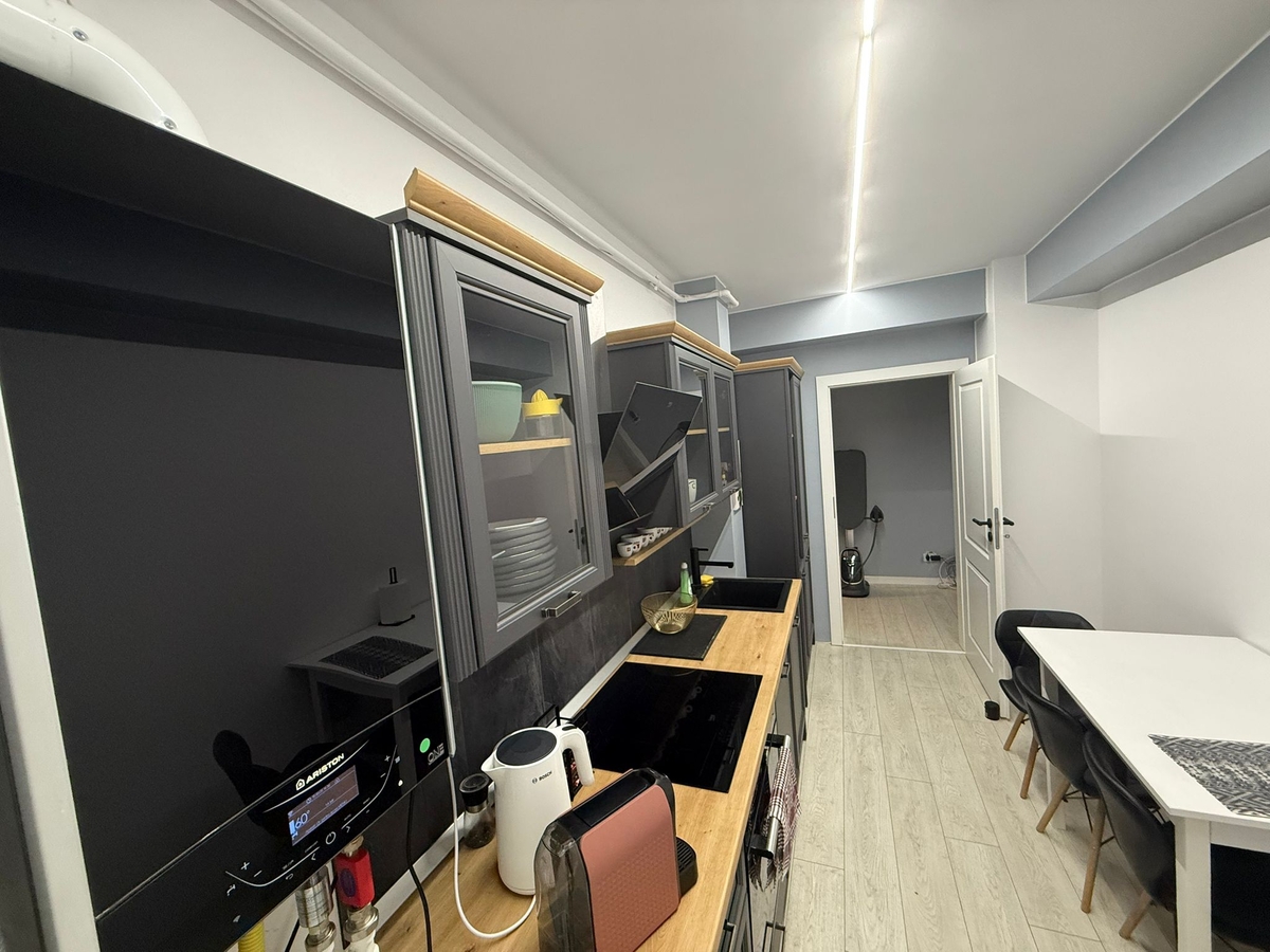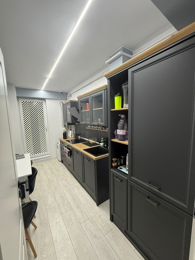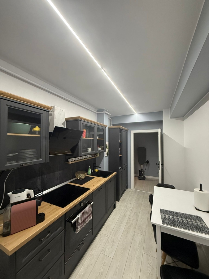 Bucatarie separata, complet echipata si mobilata, cu acces la balcon