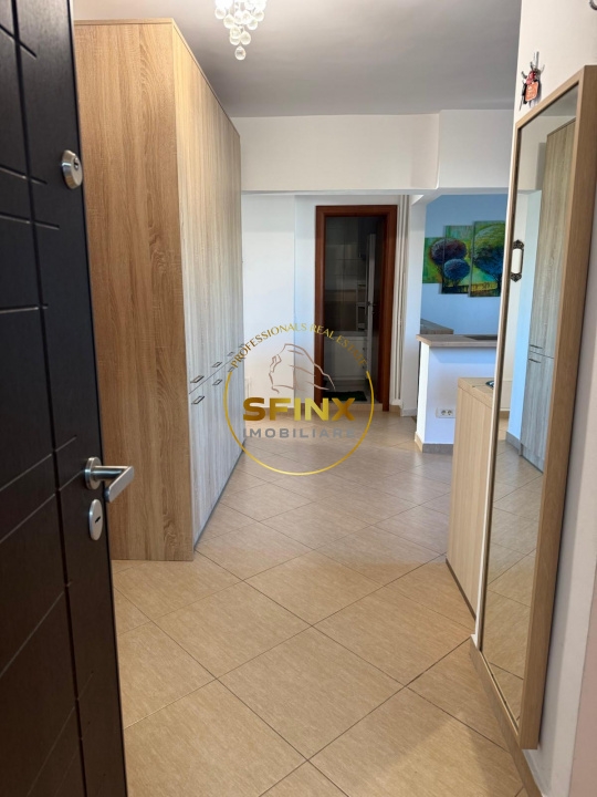 Apartamentul este renovat, mobilat si utilat complet, aflat la etajul 5, si este compus din: hol, living cu bucatarie deschisa, doua dormitoare, doua bai si un mic balcon.
