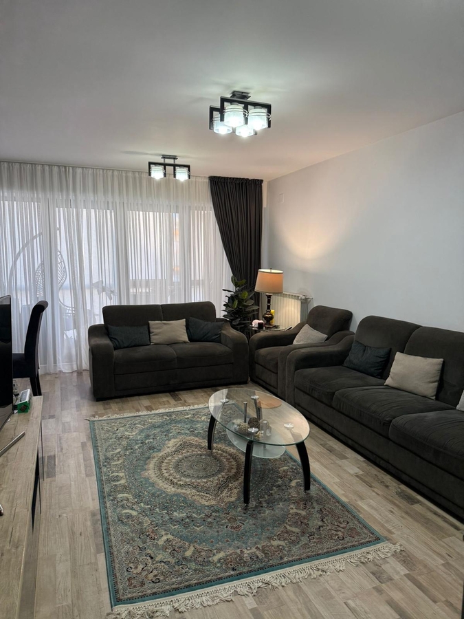 apatament tip duplex cu scara interioarape doua nivele, situat in complexul posseidon residence, situat pe marginea parcului plumbuita, avand centrala termica de bloc, spatios, 107mp, cu vederea mixta avand livingul si bucataria spre parc-lac si dormitoarele spre planul secund, 2bai, 1dressing foaerte mare, 1 loc de parcare si tot mobilierul, inclusiv electrocasnice incluse in pret..merita vizionat.