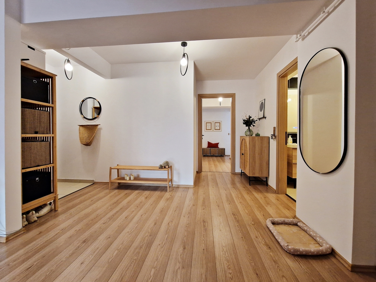 Aici, intr-un apartament de 3 camere primitor si rafinat, fiecare detaliu a fost asezat cu grija, astfel incat sa creeze o atmosfera calda si armonioasa.