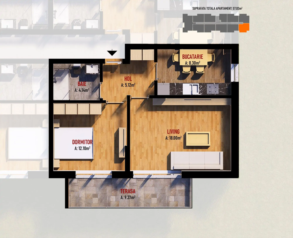 Apartament Tip Studio de la 74000 Euro, TVA inclus, avans min 20%,