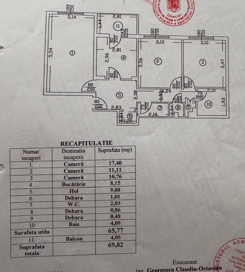 Optiuni interior: 2 grupuri sanitare Apometre Balcon Debara Izolatie termica Termopan Usa metalica