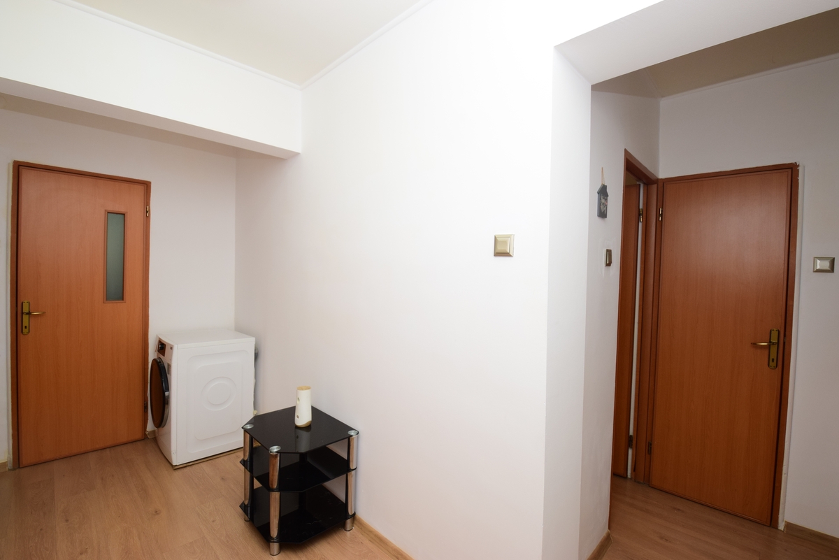 Compartimentarea este decomandata iar vederea este pe spate. La intrare ne intampina un hol generos cu toaleta de serviciu si debara in dreapta, in partea stanga livingul cu acces in balcon, in capat bucataria, apoi cele doua dormitoare si baia mare. Holul permite crearea unui spatiu de depozitare (dressing) considerabil, baia detine geam pentru aerisire iar balconul cu suprafata de 5 mp este dispus pe living si dormitorul mic.