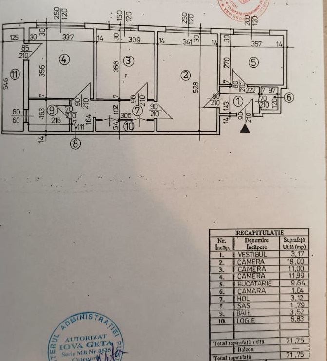 Bucataria este inchisa, cu suprafata peste medie (10mp) iar in apartament nu s-au facut modificari raportate la compartimentarea originala si la releveu.