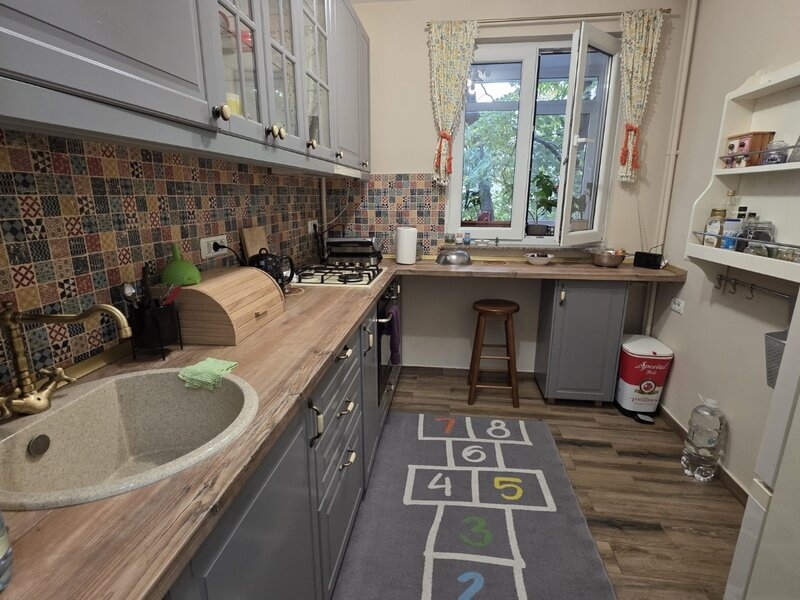 Va prezentam un apartament de 3 camere situat in Titan, la 10 minute metrou Costin Georgian, pe Barajul Bistritei, intr-un bloc de 4 etaje, reabilitat.