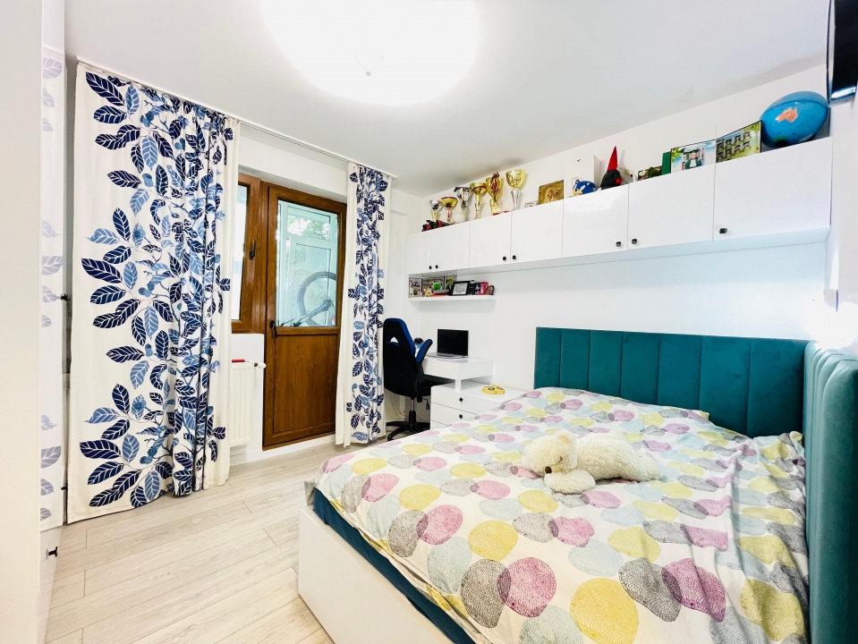 Locuinta are 3 camere si este complet decomandata. A fost renovata integral in urma cu un an, inclusiv cu schimbarea instalatiilor electrice si sanitare. Finisajele sunt de calitate, fiind folosite materiale si echipamente moderne – Grohe, Ideal Standard, gresie si faianta recenta, parchet si boiler electric.