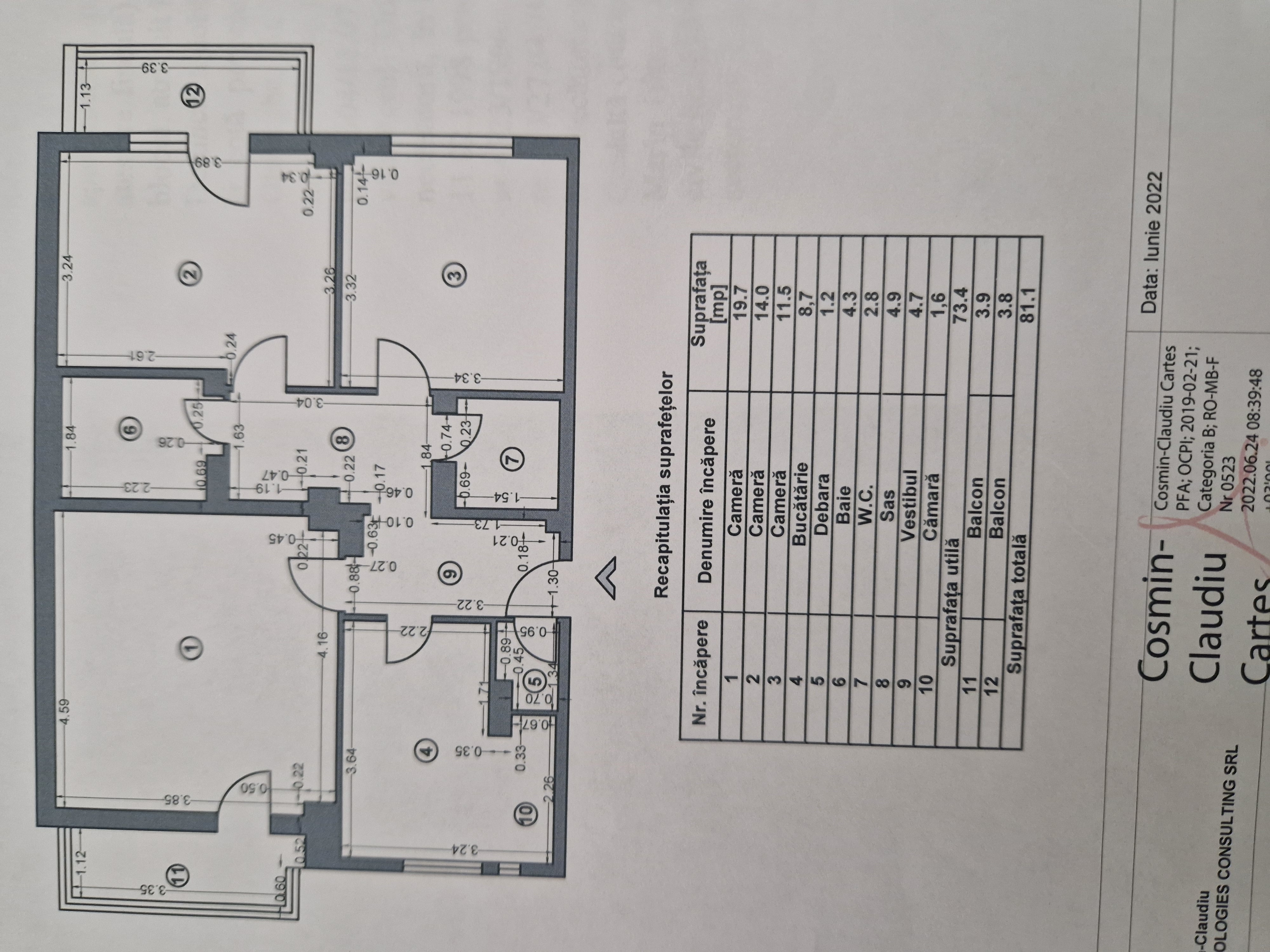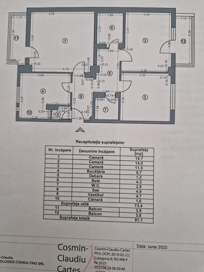 Optiuni interior: 2 grupuri sanitare Aer conditionat Apometre Balcon Debara Izolatie termica Repartitoare caldura Termopan Usa metalica