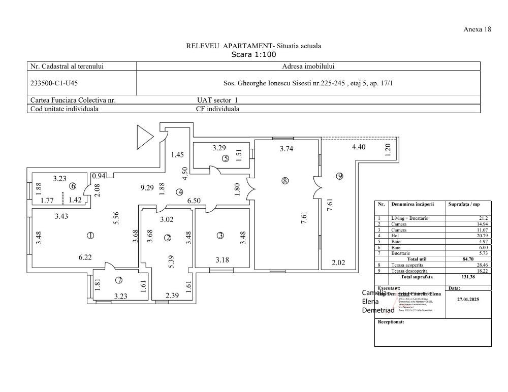 Apartament, penthouse, Sisesti, include un living spatios, 2 dormitoare, 2 bai, o bucatarie inchisa cu usa de sticla cu deschidere catre living, hol mare. Livingul este echipat Home Cinema 5.1 cu video proiector si ecran retractabil de 3m latime. Dispune de o terasa acoperita generoasa de 28m2 folosita ca a 4 a camera, cu incalzire calorifere. Terasa deschisa are 18m2, cu magazie de depozitare. Suprafata totala utila este de 131m2. Apartamentul are expunere sud, est si nord, cu vedere superba catre lacul Grivita, dispune de un loc de parcare in incinta inchisa. Etaj 5/5 Bloc cu 17 apartamente. Lift. Centrala proprie. Aer conditionat 2400BTU. Ferestre termopan PVC. Rulouri exterioare. Apartament spatios si luminos cu tavan inalt, numeroase spatii de depozitare, magazie pe terasa, dulap depozitare la subsol, spatiu de depozitare in pod. Apartamentul este situat intr-o zona in plina dezvoltare, statie autobuz 205 la 100m, metrou Straulesti la 2km, scoli, magazin Mega peste drum la 100m. Apartamentul este complet mobilat si utilat.