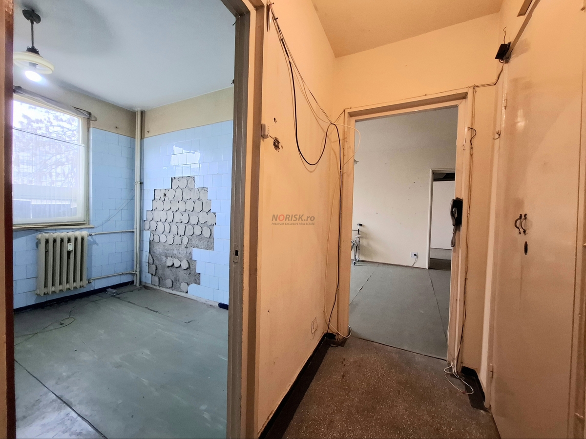 Apartamentul este semidecomandat, are o suprafata utila de 63 mp, este situat la etajul 4, si necesita renovare totala, oferind astfel libertate completa de amenajare dupa propriul gust sau concept investitional.