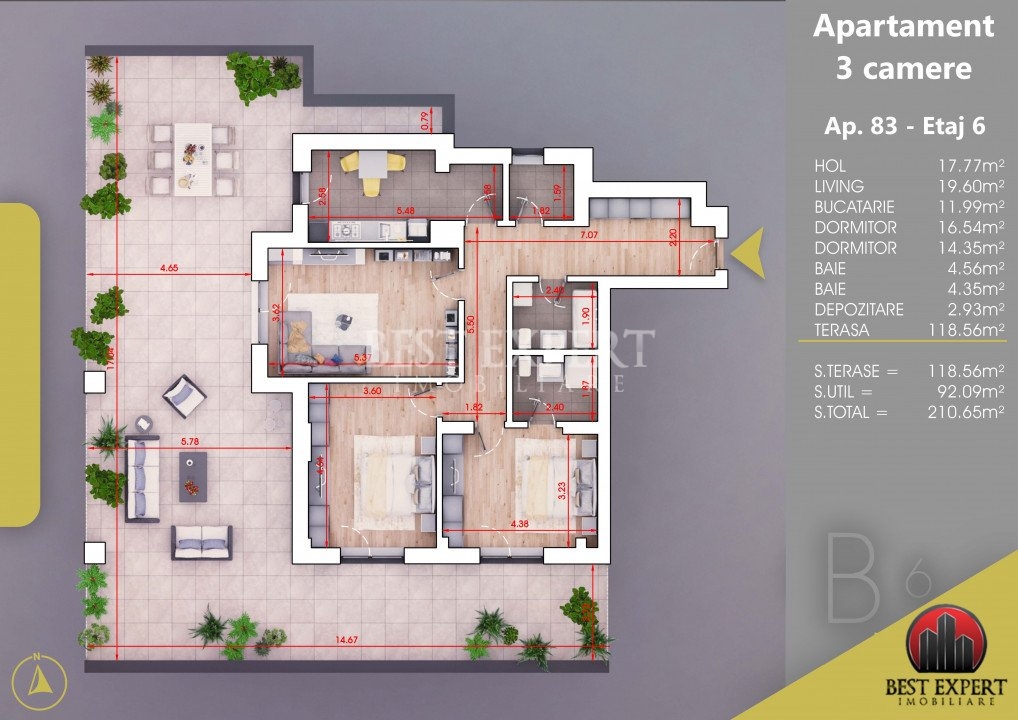 Titan 3 camere -Terasa Generoasa 118.56 mp Parcare Bonus