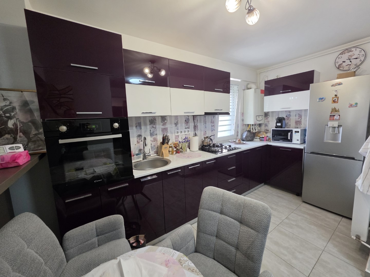 Apartamentul este semidecomandat, mobilat si utilat modern, are centrala, 2 grupuri sanitare, gresie, faianta, parchet, termopane, usa metalica.