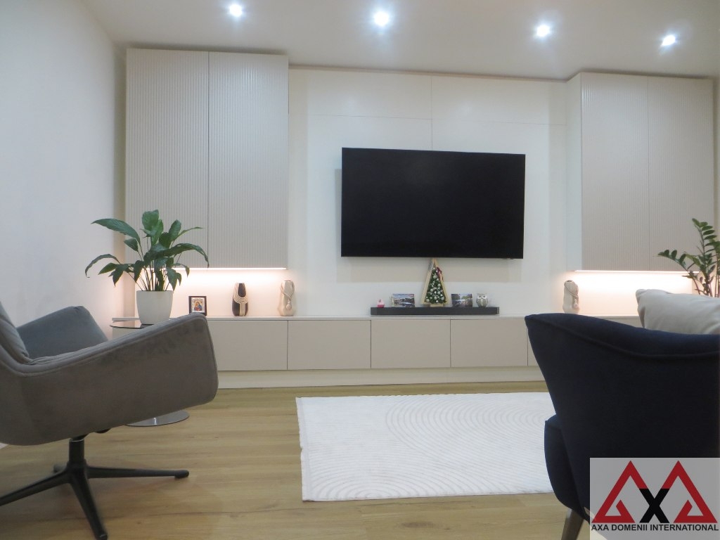Apartamentul a fost renovat integral, de la beton: peretii au fost indreptati, s-a turnat sapa autonivelanta, instalatia electrica schimbata pe cupru cu circuite separate pentru fiecare consumator, instalatia sanitara inlocuita, calorifere si usi interior schimbate, termopane, parchet triplustratificat, gresie, faianta.