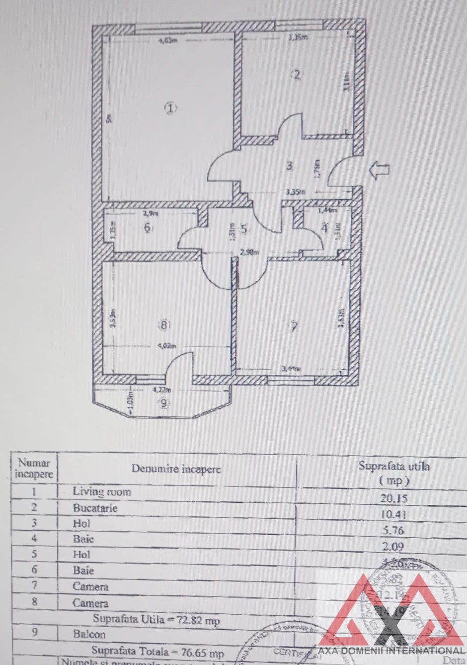 - suprafata utila de 72,82mp si o suprafata totala de 76,65mp,