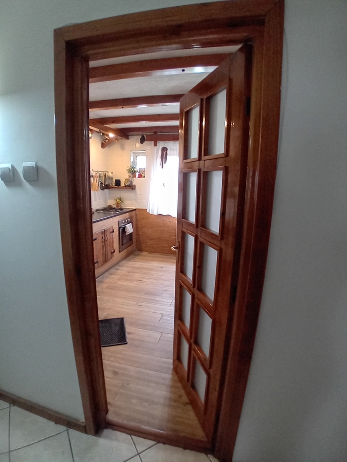Living cu barne din lemn si semineu decorativ, bucatarie in acelasi ton rustic, cu 2 bai, 2 balcoane. Etaj superior fara vecini deasupra. Vecini pe scara- civilizati. Apartament luminos pe tot parcursul zilei. Loc de parcare Adp.