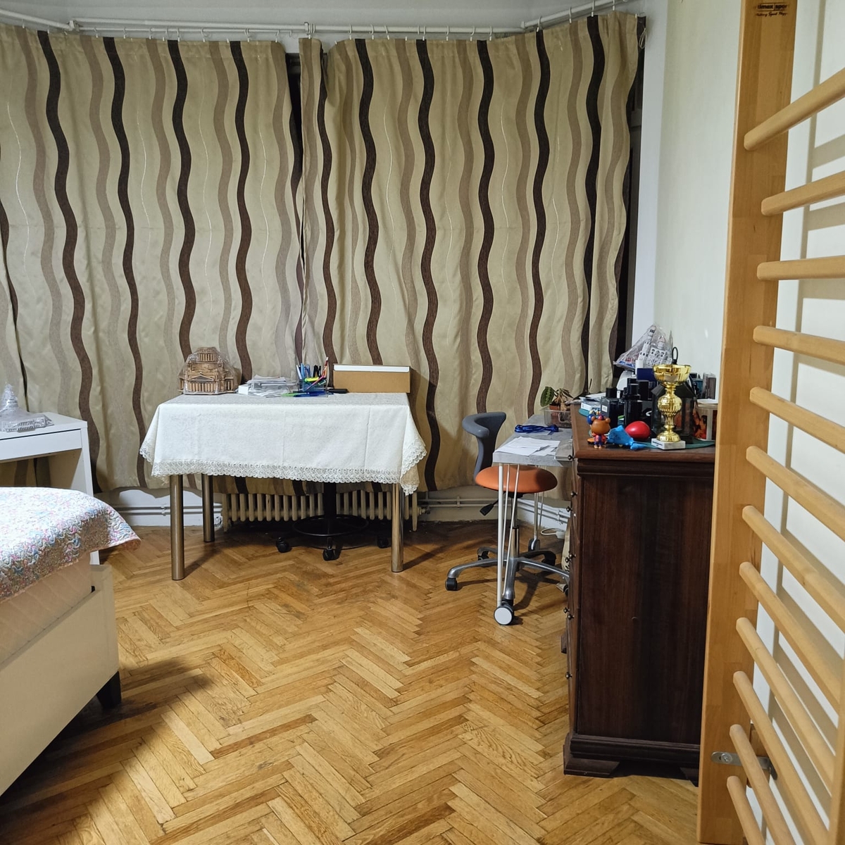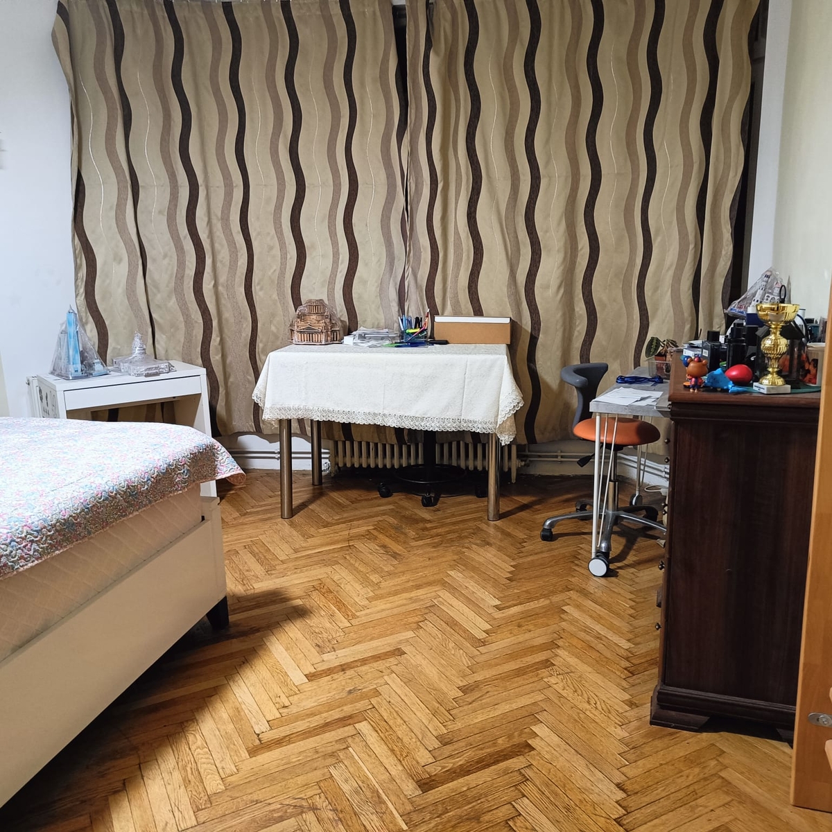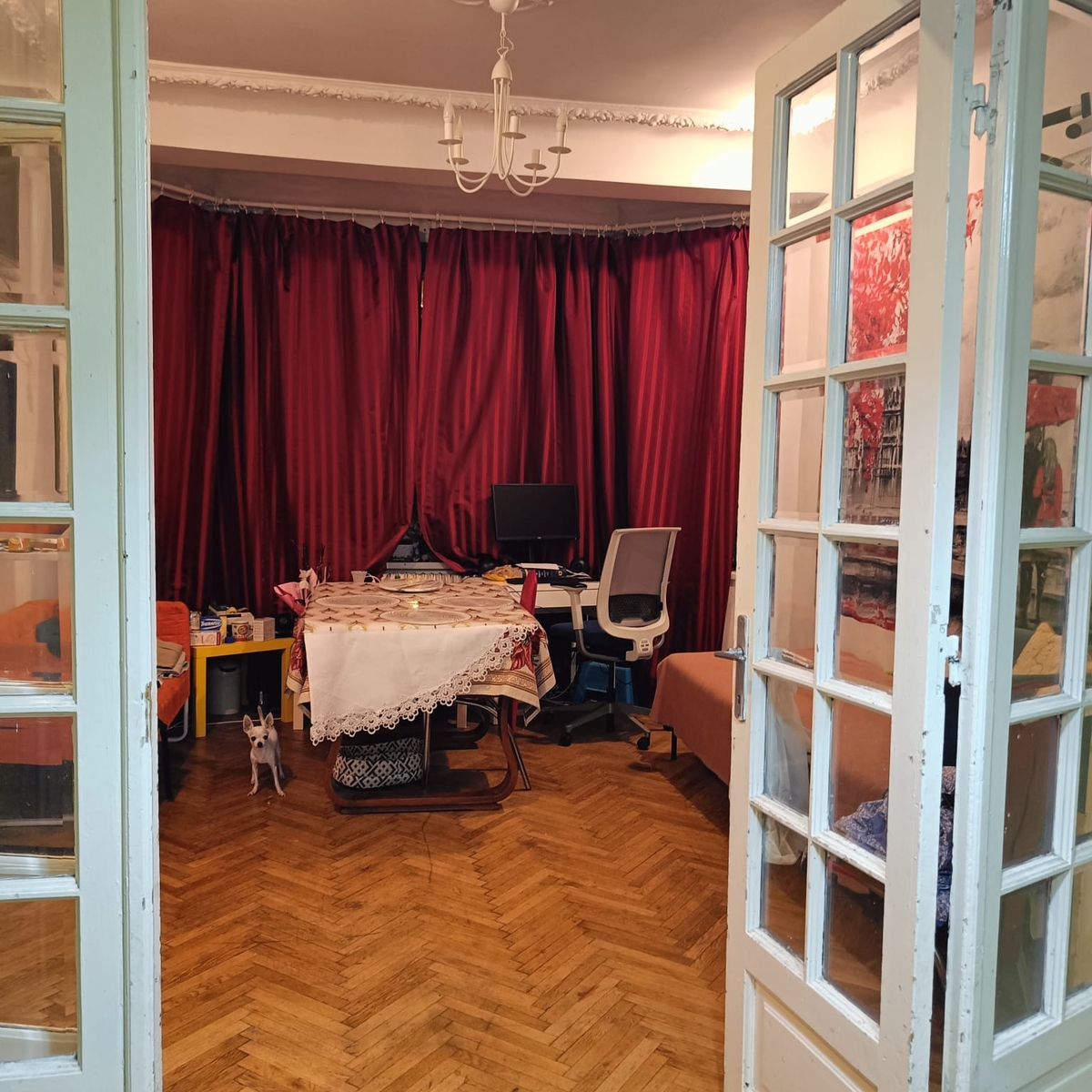 Apartament 4 camere circular, foarte spatios, forma de fagure. , pretabil cabinet de avocatura situat intr-un bloc elegant, cu spatii comerciale la parter.Apartamentul este renovat in cea mai mare masura, camere inalte de 3.6 m Usi cu geamuri de cristal originale. Situat stradal, pe colt, cu deschidere la 2 strazi principale , Str Popa Petre si Calea Mosilor . Casa scarii renovate. Baie si toaleta de service 1 camara mare langa bucatarie. 1 balcon stradal , 1 balcon de service. Geamuri inalte, cu pervaz de 40 cm latime pereti de 50 cm grosime.Incadrat la U3 .Apartamentul a fost consolidat dupa 1977. Are tiranti metalici introdusi pe directie transversala si longitudinala cu placari cu tencuieli armate.