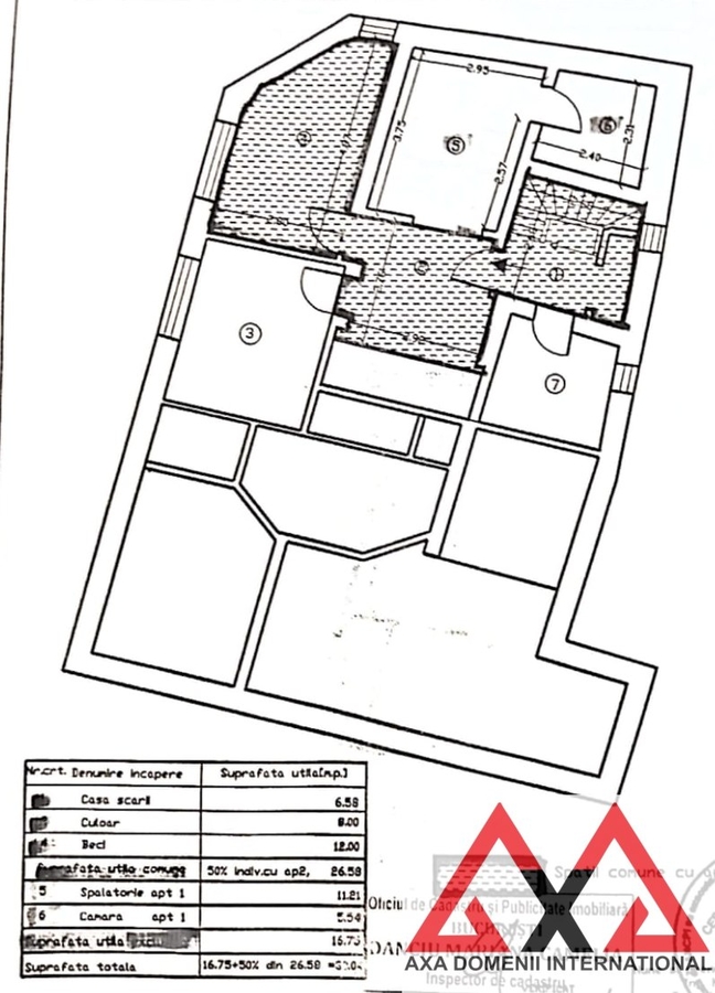 In plus disponibile sunt spatii folosite in comun (cu apartamentul de la etajul 1) in suprafata de 26,58mp.