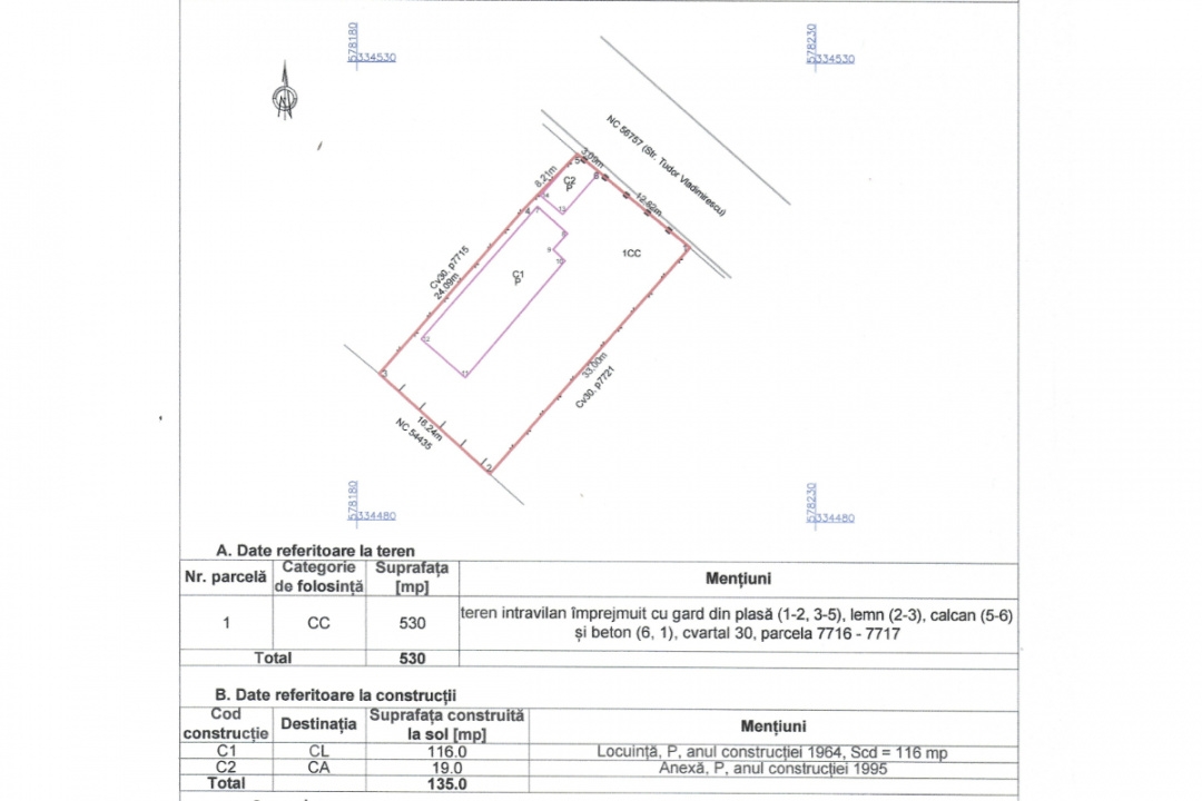• Amprenta constructiilor in teren 135 mp, teren liber 395 mp.