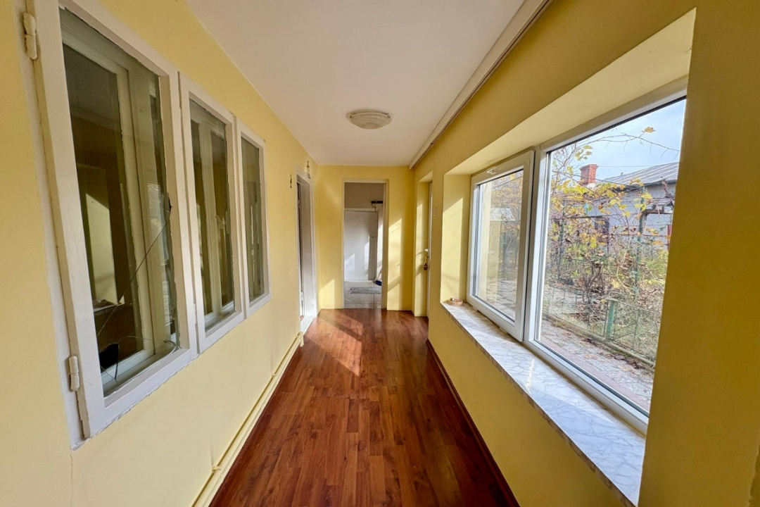 Strada linistita si curata, cu trafic redus, la 400 m de Mega Image, aproape de gara si de Lidl. Casa solida tip vagon, cu 4 camere, o baie si o bucatarie, amplasata pe un lot generos, ideala pentru o familie care doreste intimitate, spatii pentru copii, recreere si gradinarit. Garaj, terasa, 2 anexe, put de apa. Interior de renovat, cu 3 intrari separate. Vedere catre gradina, expunere SE, spatii de depozitare, pivnita, pod.
