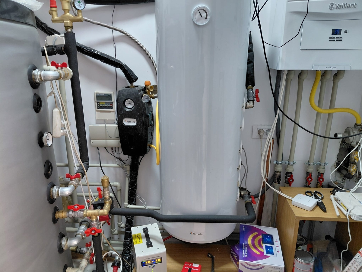 Centrala gaz, termosemineu si colectoare solare instalate, pentru apa calda si cadura.