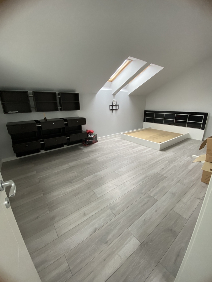 La mansarda 2 camere generoase cu spatii depozitare si o baie care se pot amenaja dupa bunul plac.