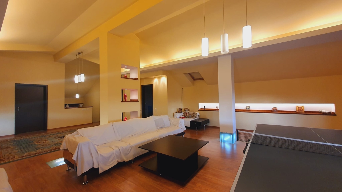 Mansarda: open space pentru relaxare si distractii, chicineta, 2 camere si baie