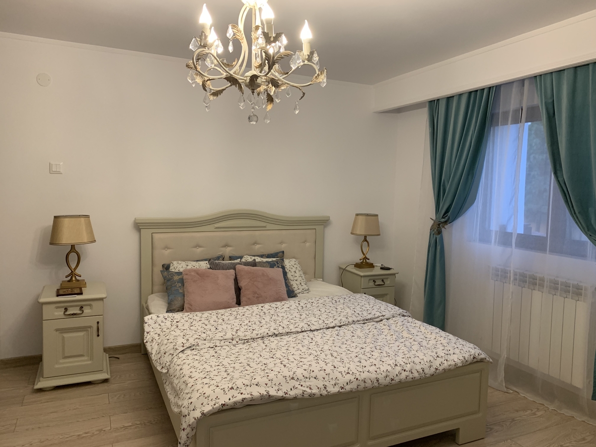 Casa, parter +2, mobilata, la cheie, 4+ bai, 3 bucatarii, 8 camere, cate un apartament pe etaj, plus o garsoniera la parter, panouri solare si baterii 10kw, acces separat la fiecare etaj din casa scarii de marmura (ca la bloc), 2 centrale gaz in condensatie, total utilat si mobilat (lemn masiv, sticla, metal, piese de colectie). Curte amenajata cu pavaj, gazon si livada pomi fructiferi. Beci in subsolul casei si un alt beci sub gradina, garaj 2 locuri.