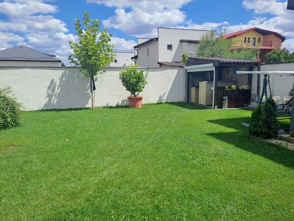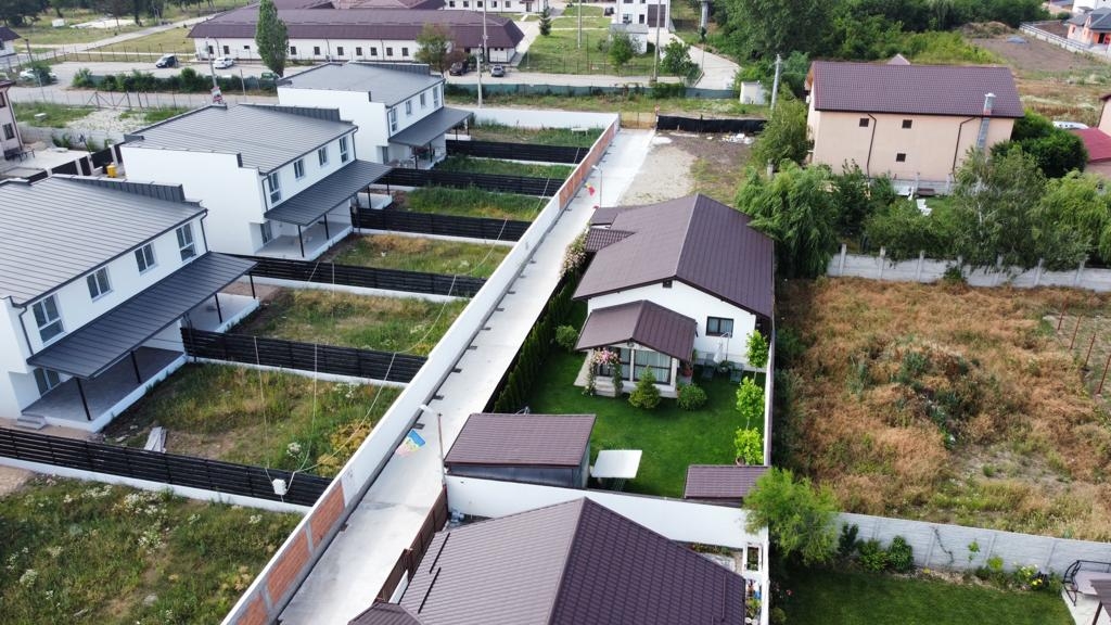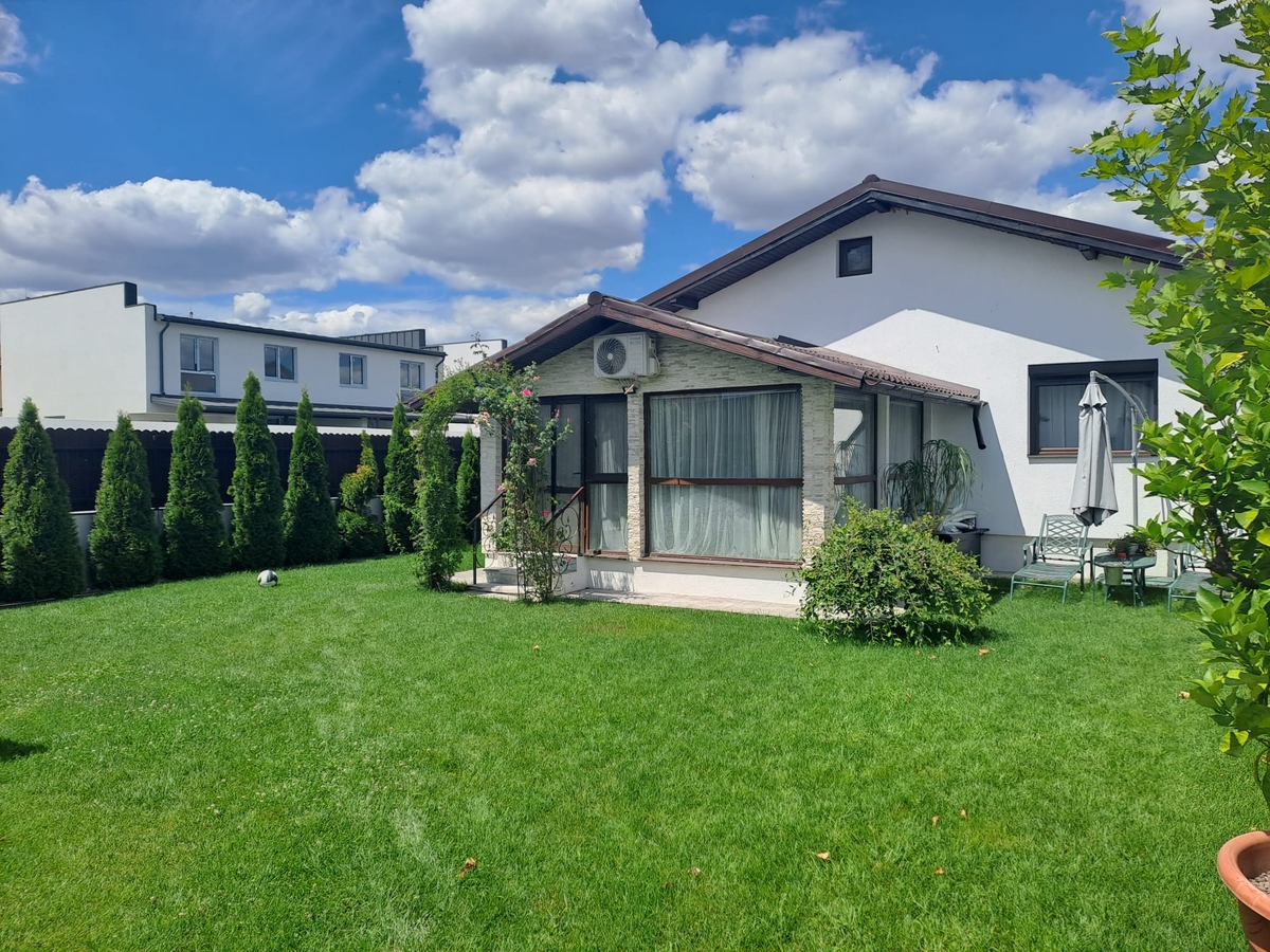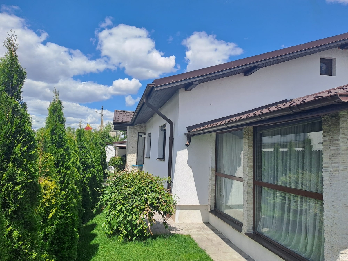 Proprietar vand casa individuala 5 camere,la cca 700 de m de pod-centura, compusa din living, daining, 3 dormitoare (dormitor matrimonial cu baie matrimoniala cu wc, dus,lavoar), 2 bai cu geam,hol, bucatarie, pod spatiu de depozitare. Curtea este cu suprafata de 600 mp si in curte se afla 2 garaje, bar cu mobilier ,dozator de bere,lavoar,vitrina frigorifica, baie de vara , bucatarie de vara ,foisor de vara. Irigarea curtii se face cu sistem de aspersoare si put propriu. Casa are toate utilitatile( apa, canalizare de la Apa Canal Ilfov, put propriu pentru curte,gaze, curent, fibra optica RCS,iluminat stradal,strada betonata, porti de acces pentru cele 4 case dupa strada, la toate geamurile sunt rulouri exterioare aluminiu.Casa se vinde mobilata si utilata. Casa este construita din caramida Phorotherm, izolatie polistiren 10 cm, densitate eps 80, tabla Bilka 0,5,fundatie 1,10 m .