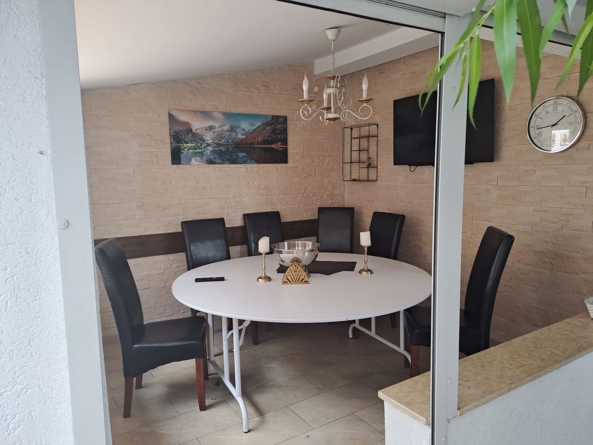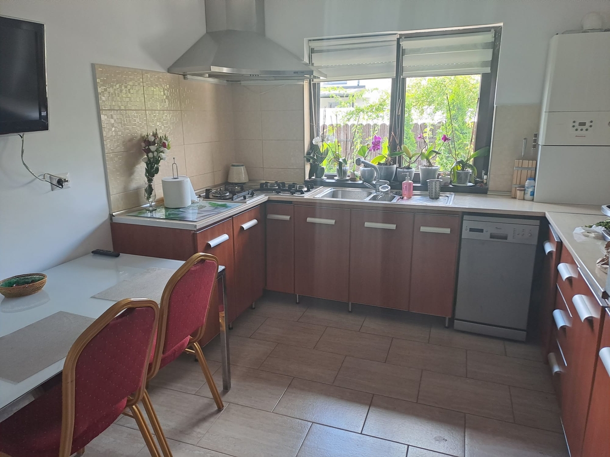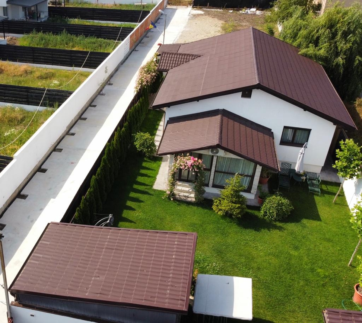 Proprietar vand casa individuala 5 camere,la cca 700 de m de pod-centura, compusa din living, daining, 3 dormitoare (dormitor matrimonial cu baie matrimoniala cu wc, dus,lavoar), 2 bai cu geam,hol, bucatarie, pod spatiu de depozitare. Curtea este cu suprafata de 600 mp si in curte se afla 2 garaje, bar cu mobilier ,dozator de bere,lavoar,vitrina frigorifica, baie de vara , bucatarie de vara ,foisor de vara. Irigarea curtii se face cu sistem de aspersoare si put propriu. Casa are toate utilitatile( apa, canalizare de la Apa Canal Ilfov, put propriu pentru curte,gaze, curent, fibra optica RCS,iluminat stradal,strada betonata, porti de acces pentru cele 4 case dupa strada, la toate geamurile sunt rulouri exterioare aluminiu.Casa se vinde mobilata si utilata. Casa este construita din caramida Phorotherm, izolatie polistiren 10 cm, densitate eps 80, tabla Bilka 0,5,fundatie 1,10 m .