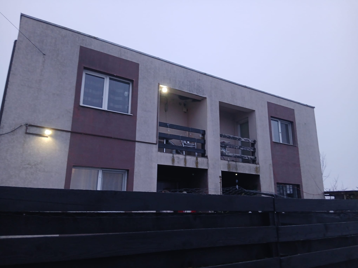 Vand casa tip duplex P+1 ,4 camere,3 bai,terasa,balcon. Casa are ca utilitati : curent,centrala termica pe peleti,put propriu, fosa septica. Proprietatea este la cca 100 m de soseaua principala,in apropiere la cca 200 m se afla statie STB.
