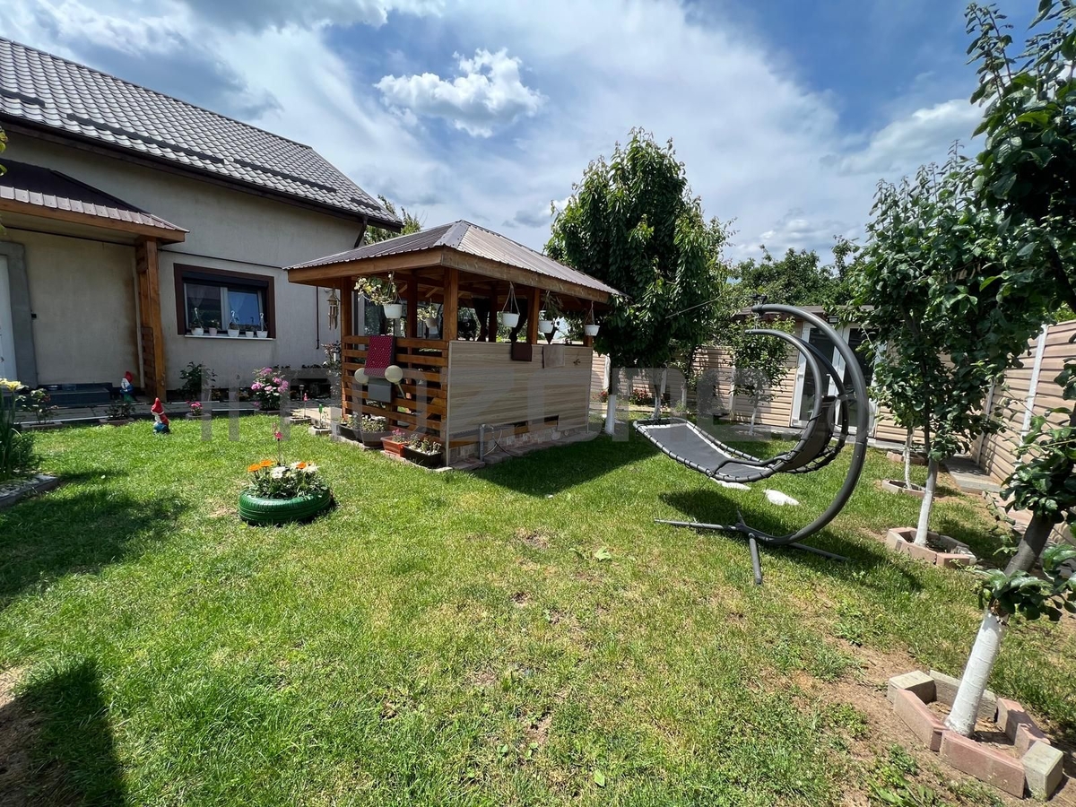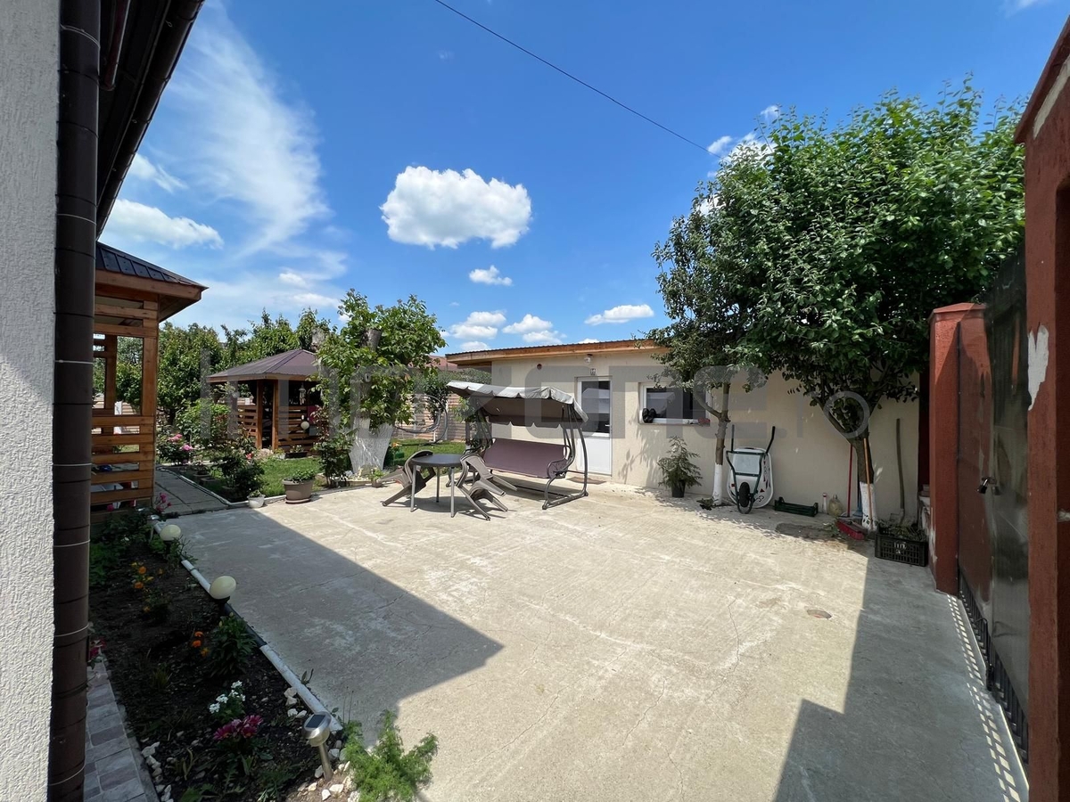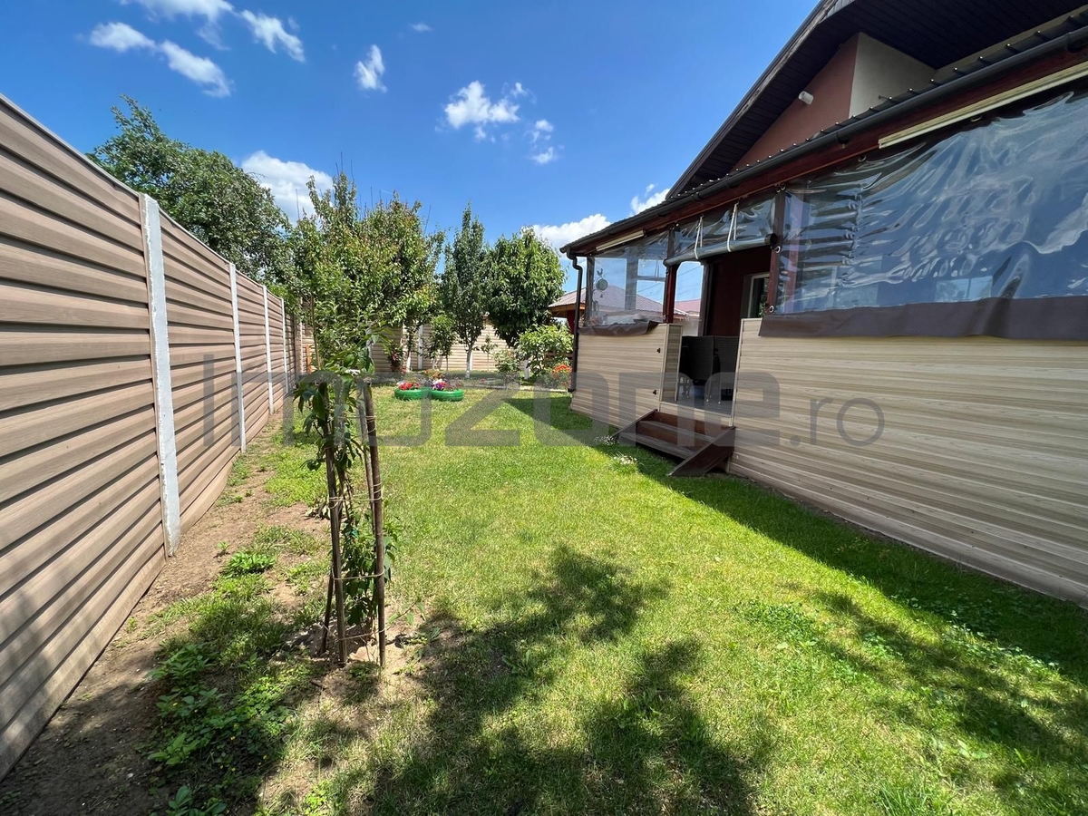 Suprafata totala de teren este de 511mp din care amprenta casei este de 120mp, spatiu pentru 2 locuri de parcare - in curte plus garajul, curtea fiind amenajata cu pavaje si beton amprentat.
