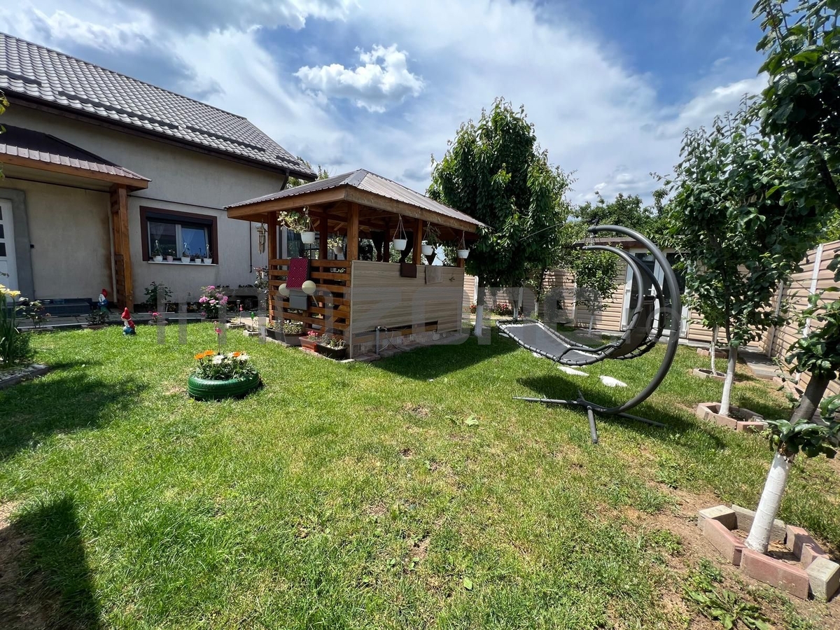 Finisaje - tamplarie PVC cu geam termopan, instalatie electrica din cupru, retea TV, retea pentru internet, monitorizare video, instalatie sanitara si incalzire PPR, izolatie exterioara 100mm, iar la acoperis s-a folosit tabla metalica marca Lindab.