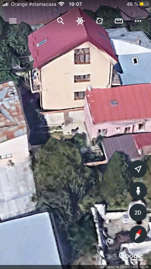 Terenul are deschidere 10 m si lungime 30 m. Cele doua corpuri de casa au amprenta la sol de 136 mp din totalul de 286 mp masurati sau 300 mp din acte, reprezentand 45% POT si curte libera 150 mp.