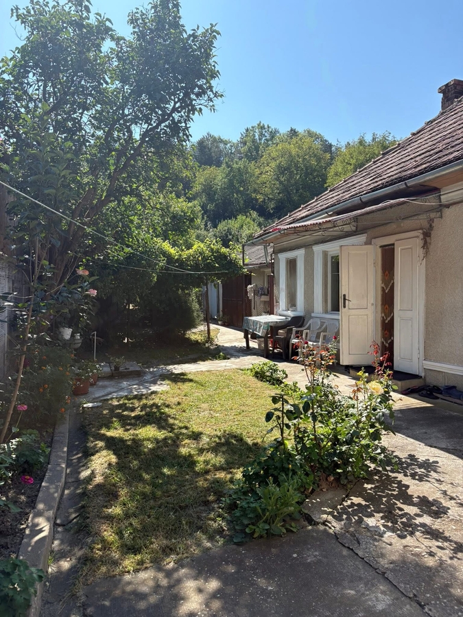 Constructie pe fundatie de beton din caramida cu acoperis din tigla, in suprafata construit de 104mp, curte in suprafata totala de 450mp si gradina cu pomi fructiferi de 500mp cu iesire in padurea cu pini.
