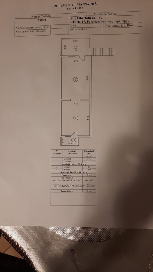 La etaj(mansardat) sunt 2 camere, terasa, balcon - utili 49 mp, plus spatiu de depozitare.