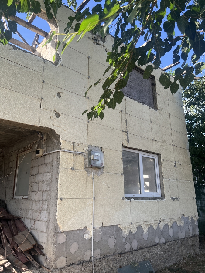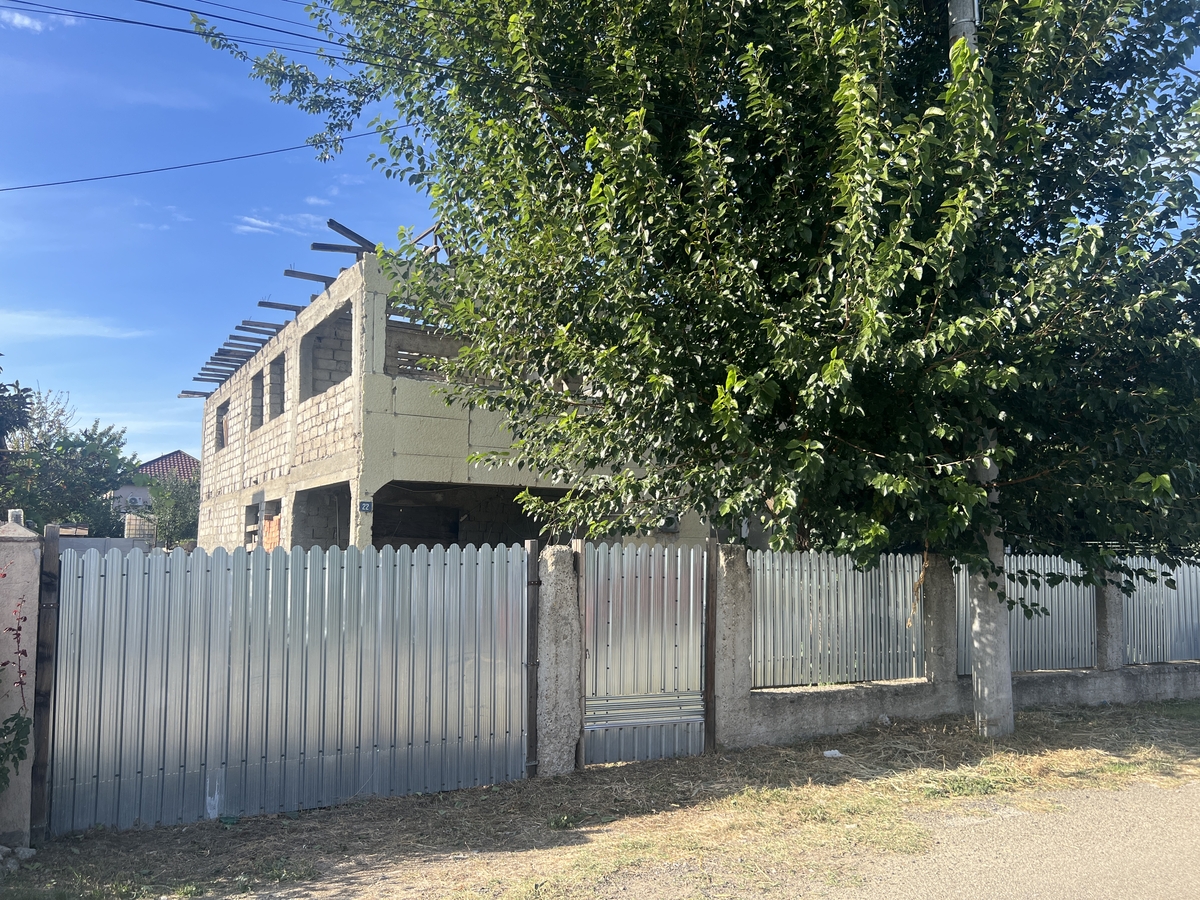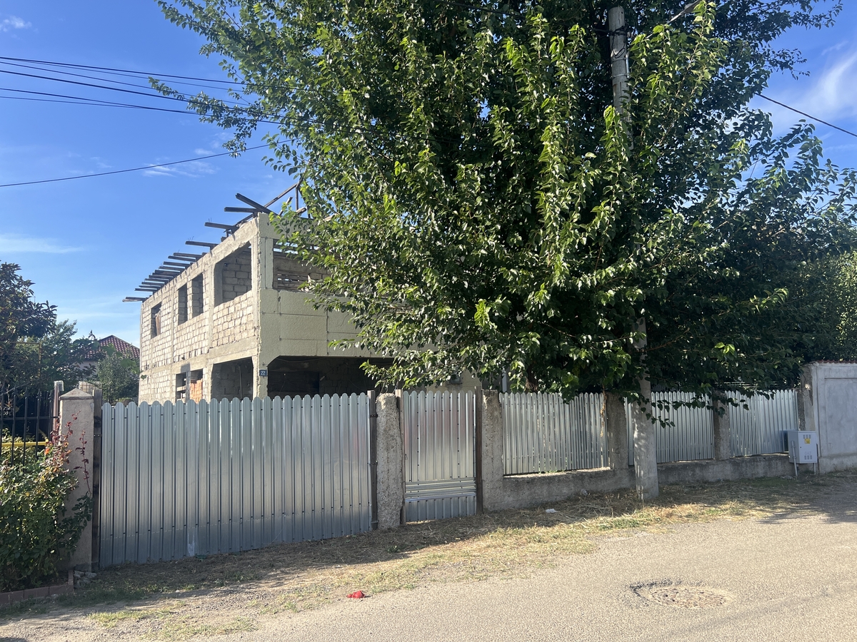 Casa este construita din boltari de beton, pe o suprafata de aproximativ 100 mp, teren de 455 mp, cu concesiune la primarie.