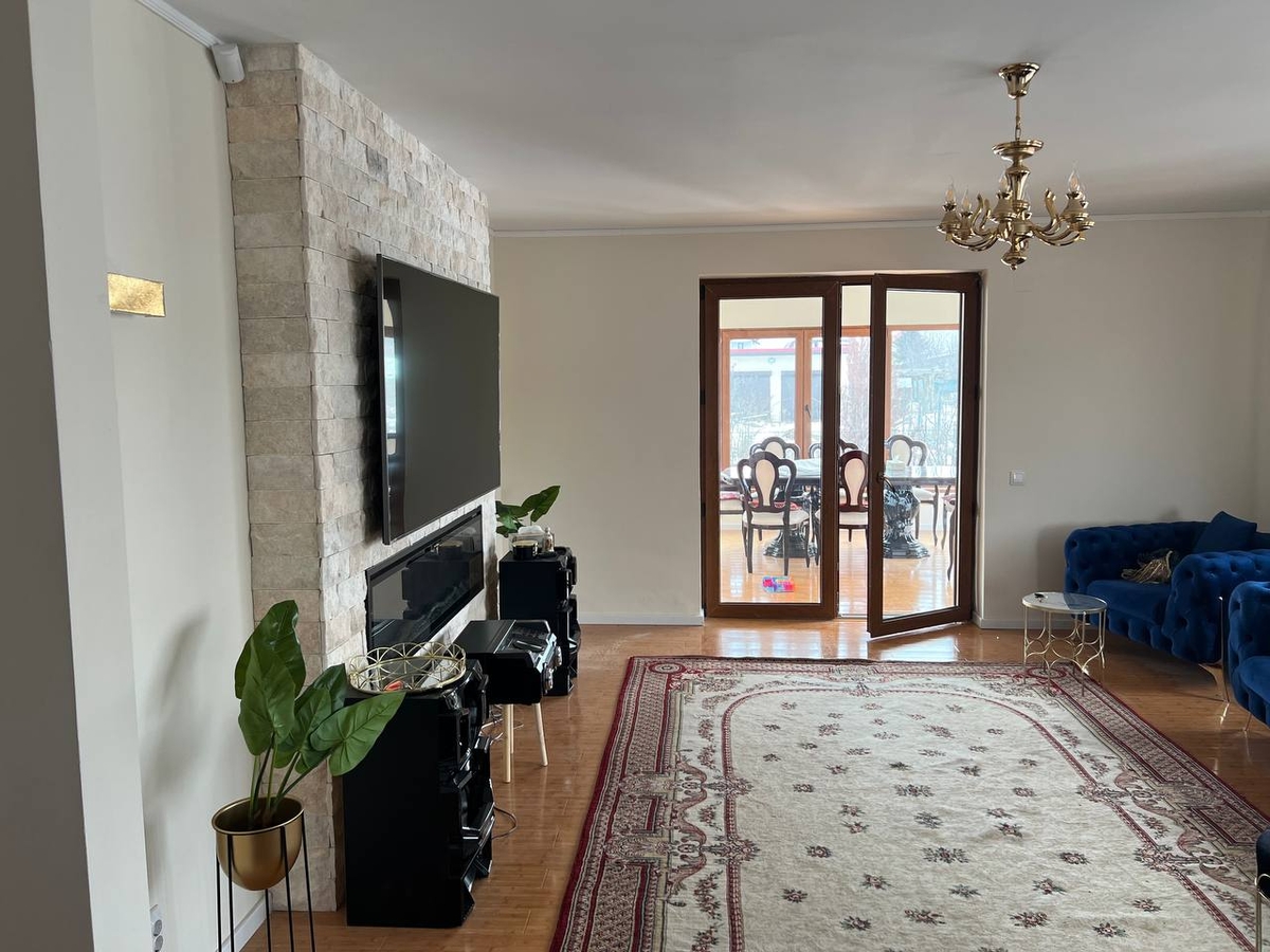 Vila are 9 camere, 7 bai, dressinguri, 2 garaje, beci, magazie, multiple spatii depozitare. Are o suprafata construita la sol de 225 mp si o suprafata totala de 520 mp, fiind amplasata pe un teren de 1430 mp, la 100 ml de padurea Branzeasca.