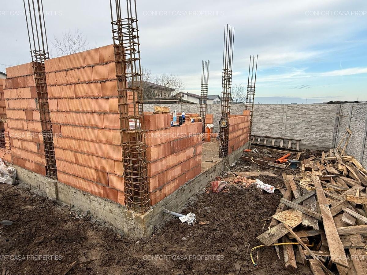 4 camere, 2 bai, cu posibilitatea de a fi personalizata dupa preferinte. La parter se regaseste un living generos cu acces in spatele casei, un hol spatios, un grup sanita si bucataria. La etaj exista un hol spatios , 3 dormitoare si baie aceesibila din hol. Proprietatea dispune de un teren total de 200mp, amprenta casei este 60mp, iar restul de curte este foarte bine delimita de care un gard inalt. Proprietatea beneficiaza de curent electric, fosa septica, si gaze, (anul 2026 urmeaza si canalizarea si apa). Acest imobil reprezinta alegerea perfecta pentu o familie care isi doreste o casa cu un proiect deosebit, in stil mediteranean, ferita de zgomotul urban, situata la 30minute de mers cu masina fata de centrul Bucurestiului, Avantalul acestui proiect este ca NU se plateste TVA