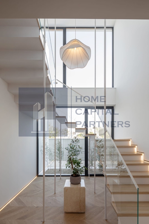 Intregul concept este construit in jurul ideii de confort inteligent: incalzire prin pardoseala, climatizare centralizata, sisteme de iluminat integrate si mobilier de designer realizat la comanda. Vila se vinde complet mobilata si utilata, fiind pregatita pentru mutare imediata.