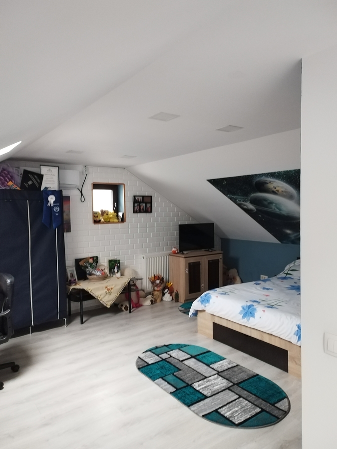 Casa de vanzare Popesti Leordeni casa parter + 1 etaj + mansarda, livig 25 m, bucatarie inchisa , 3 dormitoare a cate 12 m fiecare, trei baii si mansarda locuibila, teren 183m si construibil 124m. Statie de autobuz la capatul strazi maxim 2 minute de mers pe jos si scoala in apropiere la 2 stati de masina distanta. Va rugam daca doriti sa sunati sa o faci in intervalul orar 17-21.