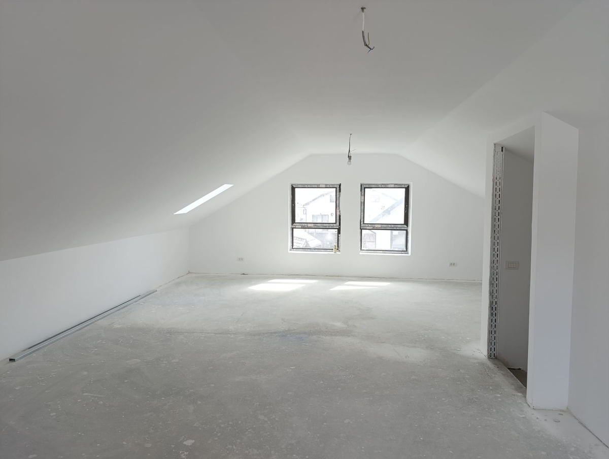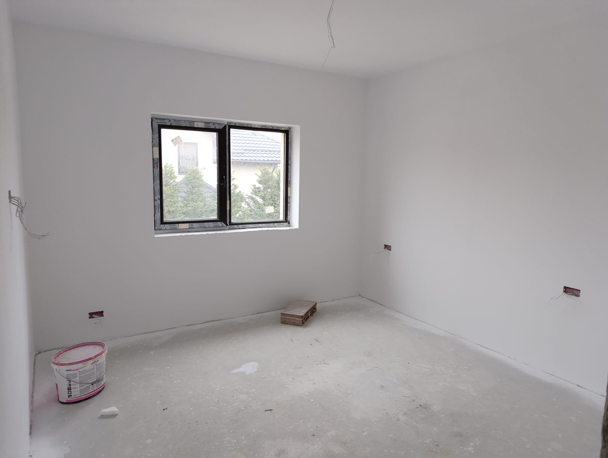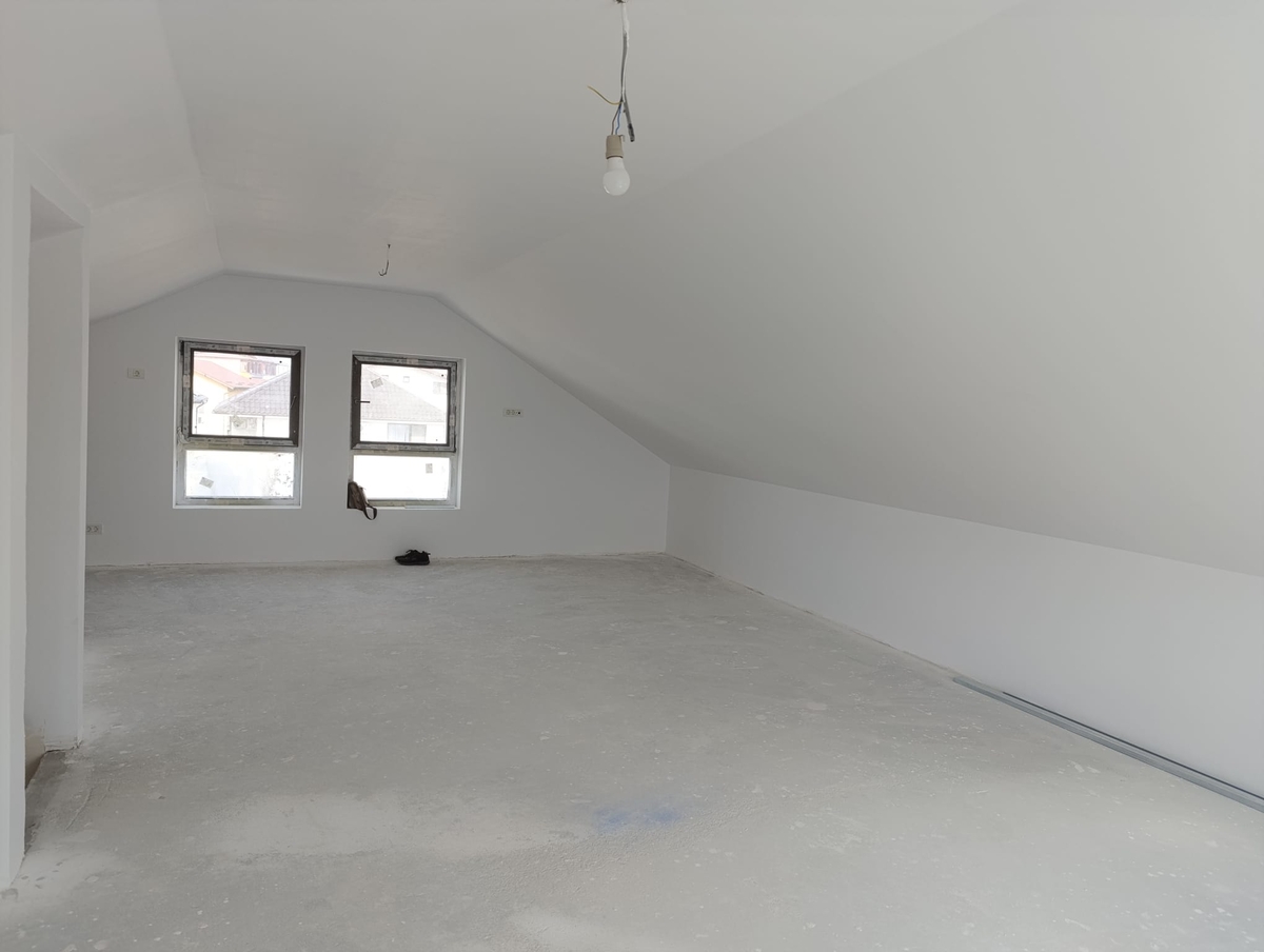 Vila individuala regim de inaltime P+1+M, Sc la sol 75 mp, Scd 225 mp, Sut 180 mp, 5 camere (cu dormitor la parter) + mansarda open space, 3 bai, terasa mare (22 mp), teren in exclusivitate 252 mp + cca. 50 mp drum (latime de 8,2 m pe care se pot parca masinile). Casa este finisata la exterior, iar la interior este la nivel gri (vopsea lavabila realizata), noul proprietar urmand sa-si personalizeze finisajele interioare. Instalatii: apa, canalizare, gaze si curent de la retele stradale, incalzire in pardoseala, priza masina electrica.