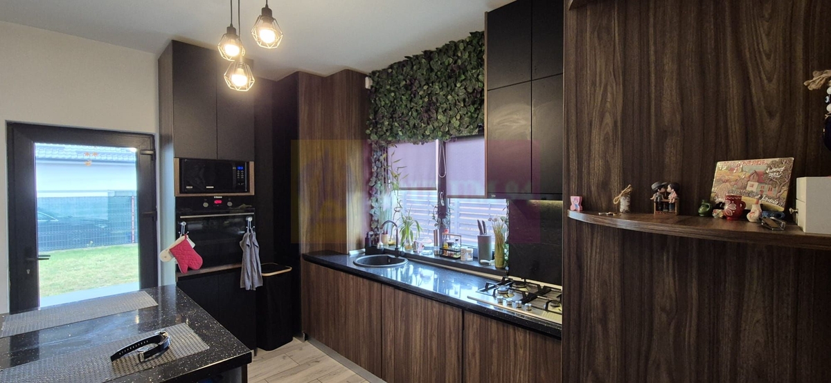 Casa este situata in localitatea Sabareni, la 11 km de Centura Capitalei, intr-o zona rezidentiala noua, in vecinatatea padurii. Are structura de rezistenta din beton armat si zidarie din caramida, este construita in anul 2020, are 3 camere, 2 bai, bucatarie, hol, camera tehnica si terasa acoperita. Este izolata termic si finisata complet: gresie, faianta, parchet, termopan, obiecte sanitare, centrala pe gaze, calorifere. Casa este mobilata (mai putin un dormitor), inclusiv bucataria utilata. Curtea este amenajata iar zona ferita de traficul rutier. Este intabulata si poate fi disponibila in 30 zile. Pret 135.900 EUR, negociabil. Nu se plateste comision si TVA.