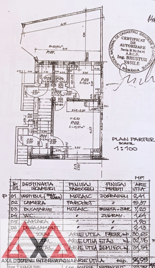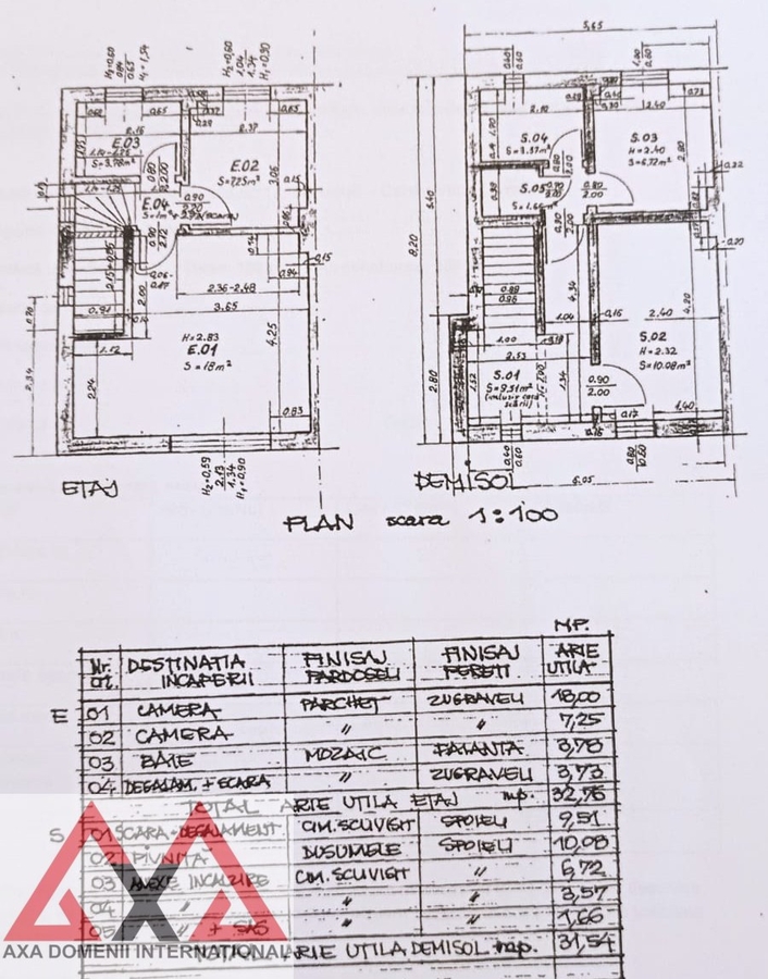 Parter (30,65mp): living, bucatarie, grup sanitar, camara, 2 holuri.
