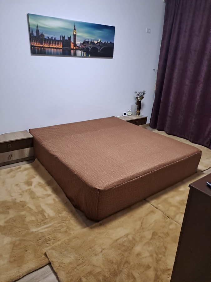 Camera este amenajata cu mobila pe comanda, dessing cu 7 usi, canapea estensibila 180 x 200 cu doua noptiere, iar pe peretele din fata patului sunt doua comede deasupra carora este un televizor suspendat cu diagonala de 160 cm, precum si un birou.